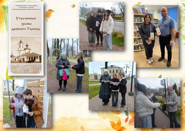 Библиотека издает серию буклетов, три из них посвящены сохранившимся храмам города Торопец. А вот четвертый называется “Утраченные храмы древнего Торопца”.