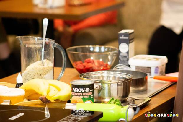 29 февраля 2020 года в книжном магазине «Абракнигабра» выступила Дарья Близнюк. Женщина не только представила две свои новые книги с рецептами, но и провела самый настоящий кулинарный мастер-класс по приготовлению клубнично-бананового тарта без выпечки. Рецепт, которым любезно поделилась Дарья:
