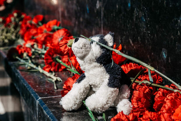 Рассмотрим фото выше. Мы не знаем, что за день и время года перед нами. Но благодаря предметам в кадре видим, что снято возложение цветов. На мемориал обычно несут гвоздики, а вот мягкая игрушка говорит нам о том, что принес ее ребенок, а, возможно, память о ребенке чтят именно таким образом. Игрушка расположена в центре кадра, именно на ней сосредоточенн наш фокус и внимание.