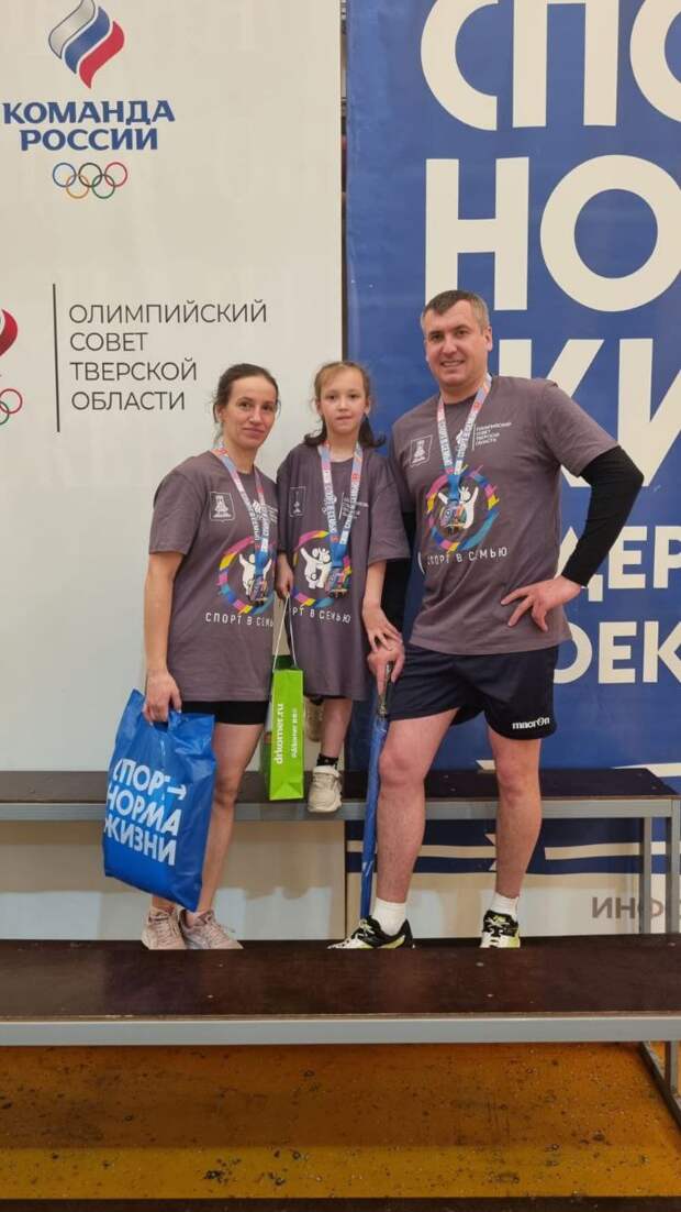 Чтобы побороться за звание самой спортивной семьи, на мероприятие прибыли 3 семейных пары из числа работников Тверьэнерго с детьми: из Вышнего Волочка, Бежецка и Твери. Одна из наград фестиваля досталась именно энергетикам: начальник Бежецкого РЭС филиала «Россети Центр» — «Тверьэнерго» Сергей Фролов вернулся домой с заслуженной победой. Вместе с супругой и дочерью они одержали верх в номинации «Трио 6-8 лет», пройдя состязания в Веселых стартах, челночном беге, бросках набивного мяча и дартсе.
