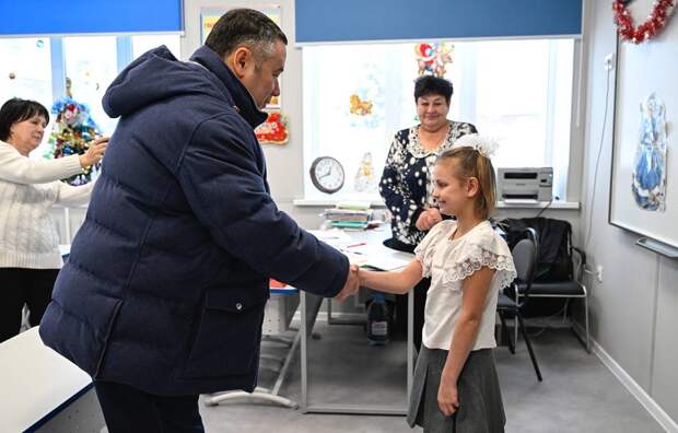30 декабря полномочный представитель Президента РФ в Северо-Западном федеральном округе Игорь Руденя приехал в гимназию №2 в Торжке, чтобы встретиться с ученицей 2 класса Дашей Петровой. Накануне Нового года Игорь Руденя вручил ей подарок.