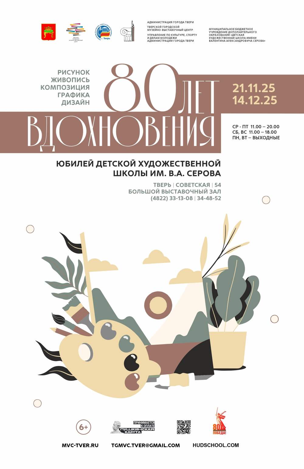 Детская художественная школа имени Валентина Серова отмечает свое 80-летие — к знаменательной дате в большом зале городского музейно-выставочного центра открылась юбилейная экспозиция «80 лет вдохновения». Основанная в ноябре 1945 года, школа начиналась с 30 учеников; её
